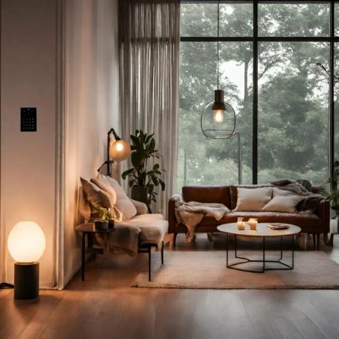 Seamless control of household appliances, including lighting and heating, with a single button press.