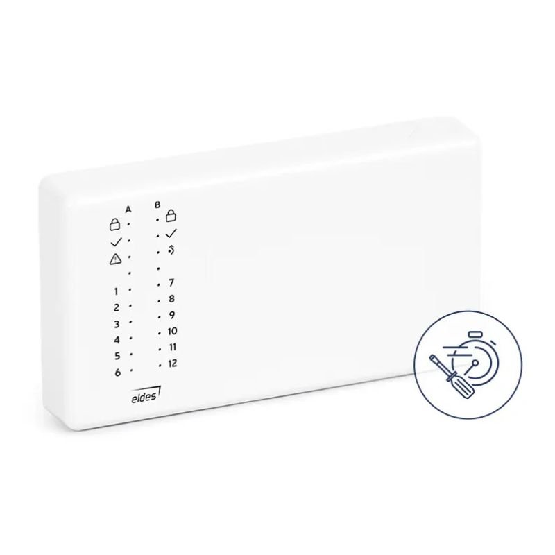 The installation of EWKB4 is extremely easy. Remove the plastic tabs from the batteries and add the device to security system with one click using ELDES Utility. Mount EWKB4 to the wall with 4 screws or a duct tape. EWKB4 has additional wired zone which enables the connection of third-party detectors. This is a perfect solution for the lower cost installations. Multiple LED indicators provide exact information about different partitions, including system’s status and faults.